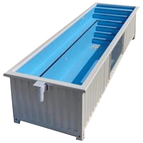 - 6 and 12 meter container pools with viewing tempered glass option fitted with pump, filter, led lights, deck and steps with option of slides and Pagola. d